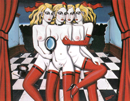 Synergy Interactive est un éditeur assez particulier dans le vaste paysage du jeu sur ordinateur. Dans la première moitié des années 90, cette société s'est employée à publier - et à localiser ! - un petit nombre de jeux d'aventure expérimentaux profitant du format CD-ROM ; un standard qui n'en était encore qu'à ses débuts, mais qui se montrait déjà particulièrement attrayant grâce aux nouvelles capacités de stockage qu'il permettait. Synergy a fini par disparaître dans l'oubli après quelques dernières publications aujourd'hui introuvables, mais il est malgré tout parvenu à se faire connaître auprès d'une petite niche... et ce principalement grâce à un jeu sorti en 1993 et devenu plus-ou-moins culte depuis : Gadget: Invention, Travel, & Adventure. Celui-ci a été conceptualisé par un certain Haruhiko Shono, qui n'en était pourtant pas à son coup d'essai puisque c'est aussi lui qui s'est chargé de designer le premier jeu édité par la boîte : Alice: An Interactive Museum, développé par Toshiba-EMI et sorti en 1991 au Japon. Comme son nom l'indique, le jeu s'inspire de l’œuvre de Lewis Carroll - enfin, plus ou moins. C'est une interprétation très libre, en fait... Ouais, c'est le moins qu'on puisse dire. Lorsque le jeu commence, vous vous trouvez dans un étrange hall en noir et blanc où résonne le bruit d'un orchestre en train d'accorder ses instruments. Après avoir vu quelques peintures apparaître sur des châssis disposés ça et là, vous voilà téléporté dans un hall bruyant, en face d'une porte d'où résonne une ambiance de fête. Cependant, l'ouvrir ne révèle qu'une pièce entièrement vide... enfin, à l'exception d'une toute petite flaque d'eau, que le toit fuyant a laissé se former au sol. Après inspection, il se trouve que de cette tâche d'humidité peut émerger une armoire entière, qui contient par ailleurs une pile de bouquins dont l'un sert de portail vers un autre monde. C'est ainsi que vous vous retrouvez dans une pièce en désordre, au milieu de laquelle trône une petite peluche de lapin... capable d'invoquer le Lapin Blanc que tout le monde connaît, qui vous invite ensuite à le suivre. ![]() Cela dit, ce n'est non pas dans le Pays des Merveilles que vous atterrissez mais plutôt dans des appartements vides de présence humaine, quoique décorés comme si quelqu'un y habitait encore il y a quelques instants. Et les peintures qui ornent ces murs ne sont pas n'importe lesquelles - elles sont signées du nom d'un artiste qui existe réellement, Kuniyoshi Kaneko. Car cet Alice est avant tout une collaboration ! Kuniyoshi Kaneko est un peintre et plasticien Japonais, né en 1936 dans la préfecture de Saitama au nord-ouest de la capitale. Il s'intéresse dès son plus jeune âge aux arts en tout genre, et il prend même des leçons de ballet en cachette à l'âge de 15 ans après avoir été marqué par une performance de Sonia Arova. Lors de ses études au Collège des Arts de la prestigieuse Nihon University qu'il intègre dès ses 19 ans, il s'intéresse aussi bien aux arts traditionnels japonais comme le théâtre kabuki qu'aux divers courants occidentaux dans la mode et le design - un atmosphère créative hétéroclite qui sera le terreau de son imagination fertile. De là naît une longue carrière qu'il exerce d'ailleurs encore aujourd'hui - on a pu encore l'apercevoir récemment à la télé japonaise - qui l'a amené à produire de nombreuses toiles ainsi que toute une collection de dessins et autres créations visuelles. Il a par ailleurs illustré certaines éditions de romans du penseur français Georges Bataille, comme L'Histoire de l'Œil ! À vrai dire, il a même sa petite notoriété, au moins au Japon, puisque ses services ont été sollicités pour les couvertures de ré-éditions japonaises de... classiques de Shakespeare. Ce qui peut paraître étrange voire perturbant quand on connaît son style, unique s'il en est ! Effectivement : Parler de surréalisme n'est ici par une extrapolation, puisque son travail s'inscrit - à sa manière - dans l'héritage d'artistes comme Salvador Dalí, Paul Delvaux, René Magritte ou Leonor Fini. À cette base se mêlent l'érotisme aguicheur des pin-up américaines des '50s comme on pouvait les voir dans des magazines comme Playboy, et un goût prononcé pour les situations ridicules mais dérangeantes qui rappellent les avant-gardes ero-guro tokyoïtes de la première moitié du vingtième siècle. C'est un mélange sacrément improbable, mais aussi un style très personnel ; la personnalité qui se dégage de ces œuvres est d'autant plus excentrique qu'elle baigne dans un véritable univers individuel formé par tout un tas de petites détails récurrents : Les mannequins androgynes, la peau pâle, les pantalons ouverts, les fourchettes, les petites tâches de sang, les poissons, etc. Pas de doute ; les peintures de Kaneko, elles viennent vraiment d'un autre monde ! L'idée de Shono était donc d'amener le joueur à vivre une expérience interactive - dans le style d'un jeu d'aventure à la première personne - dont la patte du talentueux peintre serait l'élément central. Un défi s'il en est, surtout à une époque où les visuels complexes n'étaient encore qu'à peine abordés ! C'était clairement ambitieux... à vrai dire, peut-être même un peu trop. Cela dit, on ne peut clairement pas lui retirer l'honneur d'être une création vraiment atypique, et assumée de bout en bout ! ![]() Visuellement, le choix d'utiliser des CGs réalistes issues de photos digitalisées était assez osé. Elles sont d'ailleurs vraiment soignées, surtout pour un jeu si vieux, mais ce n'est pas là seulement qu'elle brillent - le simple choix artistique en lui-même s'est montré étonnamment judicieux au final, puisque le contraste que cela crée avec les situations sans queue ni tête qui se déroulent devant vos yeux ne fait que magnifier davantage l'ambiance incroyable 