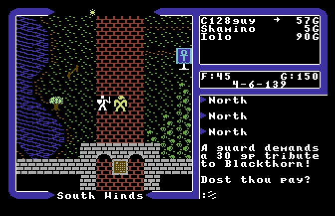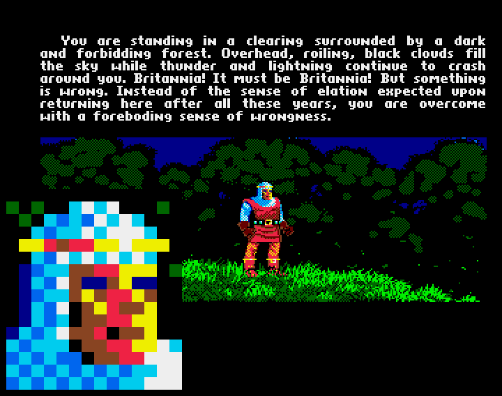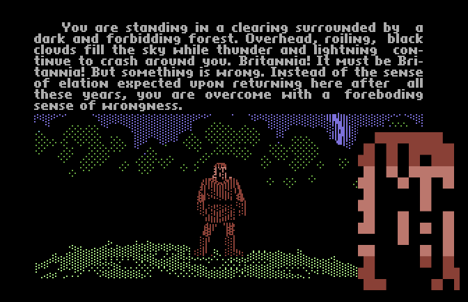 Et c’est là que ça devient étrange, car pour profiter de ces musiques, il faut démarrer Ultima V sur Commodore 128, un micro-ordinateur qui se voulait être le successeur du C64 sans parvenir à en émuler l'immense succès… Mais si vous faisiez partie des rares personnes à en avoir un, vous auriez pu profiter des musiques du jeu ainsi que de temps de chargements bien moindre surtout avec les nouveaux lecteurs de disque Commodore…. Mais pas plus finalement, pas d’autres améliorations car Ultima V est un jeu Commodore 64 qui n’utilise pas vraiment les capacités de son successeur. C’est bizarre tout de même, un jeu d’une plateforme dont on est obligé d’acheter la plateforme supérieure qui est rétro-compatible pour en profiter pleinement...