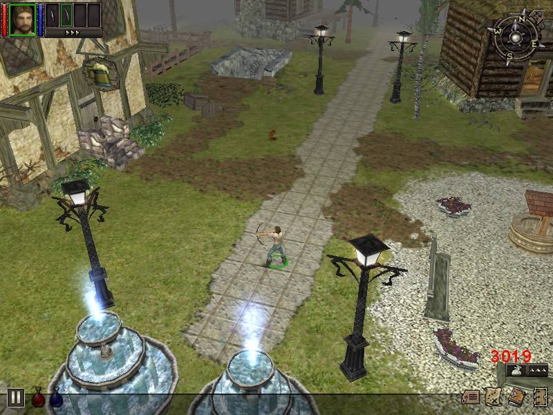 Tout ce que vous entendrez de sonore sur la version PC sans patch, c'est le bruit des fontaines qui sortent du speaker interne du PC... Et c'est ignoble !( Dos - gauche )